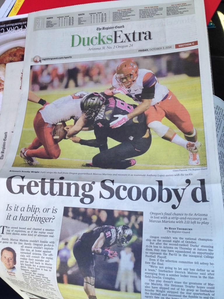Once again, there are two very good quarterbacks squaring off in this game. Funny how most of the good teams have good quarterbacks, isn’t it? Anu Solomon has had a great season in his first year as the Wildcat signal-caller, but there is one player that I’m really looking forward to seeing on Saturday night for Arizona. Scooby! Scooby Wright is a beast of a linebacker for the Arizona Wildcats and he spends his free time riding around in a creepy van with meddlesome teenagers and solving mysteries. Jk lolzzz on that last part. Scooby and company will need to be at their best Saturday night to handle UCLA quarterback Brett Hundley, who may very well be the first quarterback taken in the 2015 NFL Draft, and the group of Bruin running backs led by Paul Perkins.